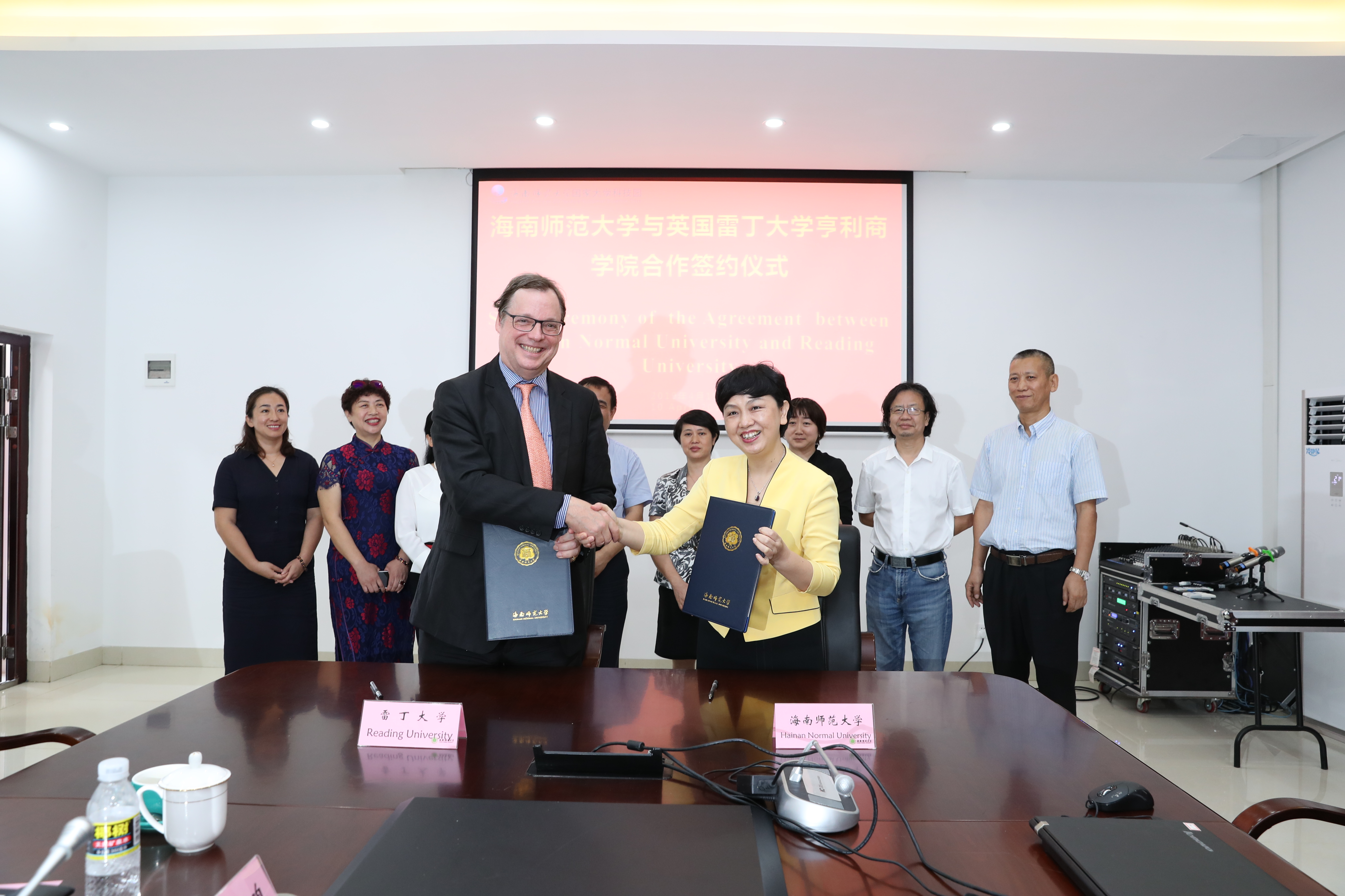 最后,双方签署了海南师范大学与英国雷丁大学校际合作谅解备忘录、海南师范大学与英国雷丁大学亨利商学院本硕“4+1”合作协议,并交换礼物、合影留念。对外合作与交流处、教务处、督查督导办公室、基建处、大学科技园、研究生学院、经济与管理学院相关负责人出席接待座谈会。